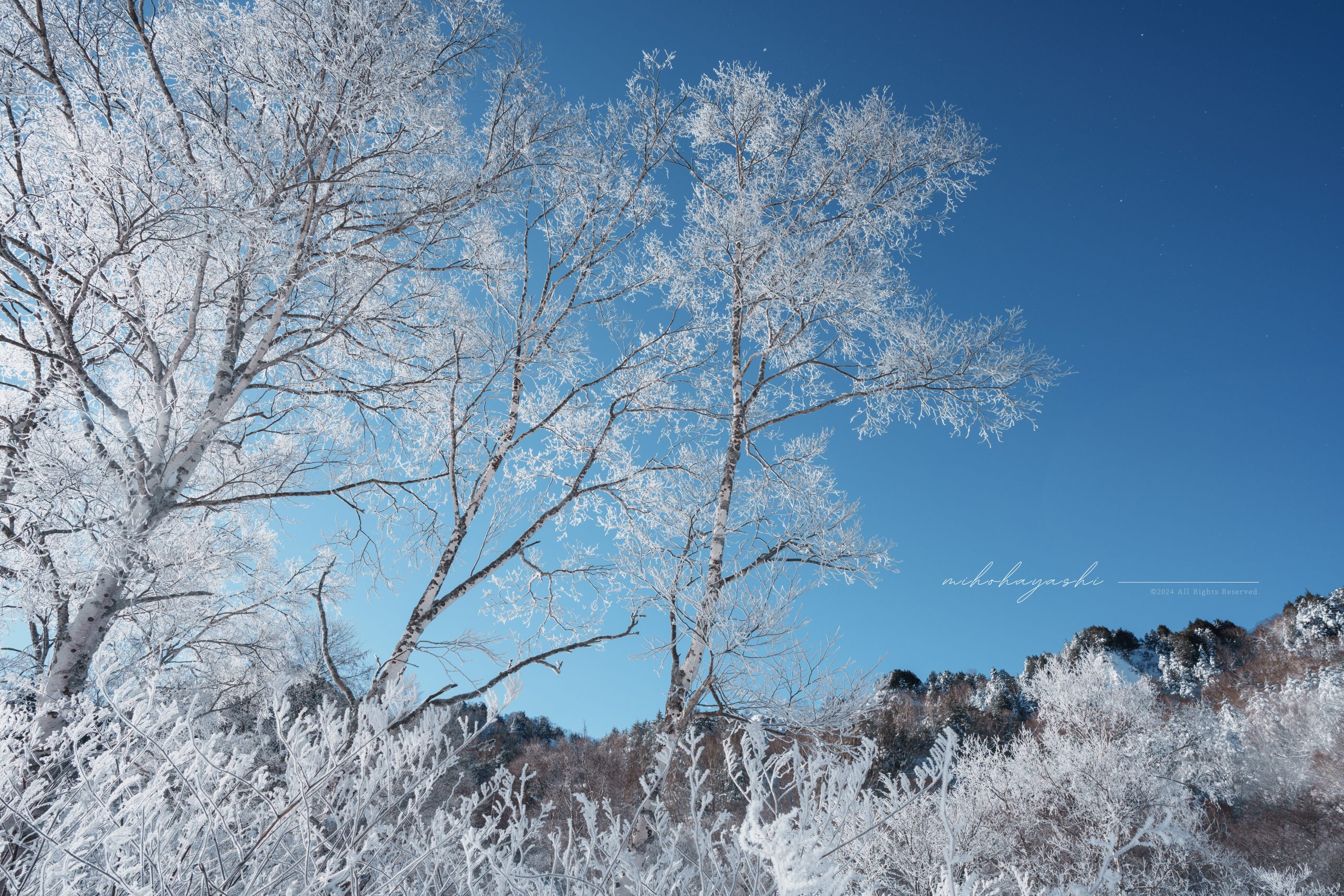 見上げれれば、視界に入るのはのびやかな空と真っ白は霧氷。