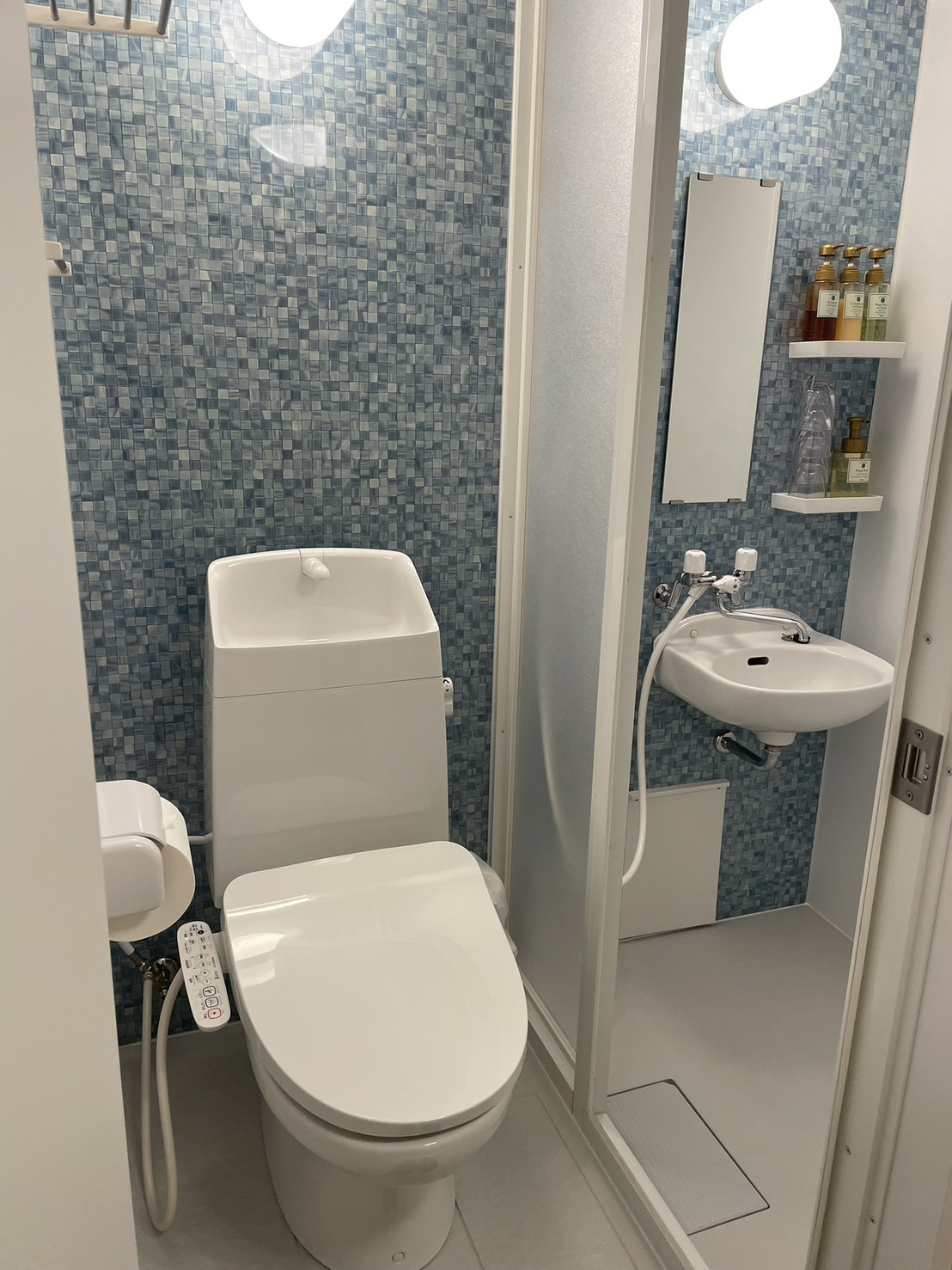 以前の設備を一新し、最新のシャワー付き機能トイレを導入。 清潔感あふれる明るい空間へと生まれ変わりました。